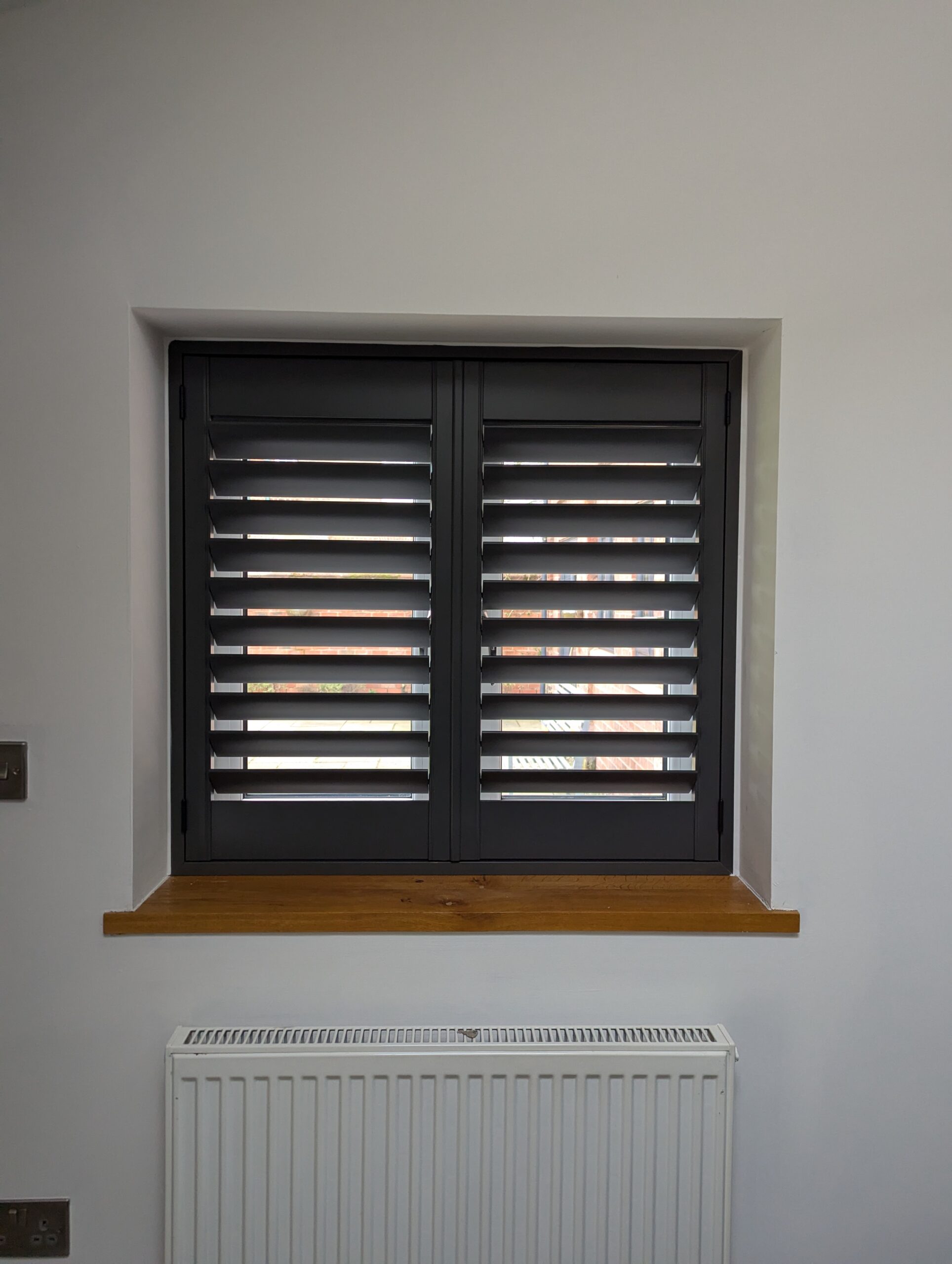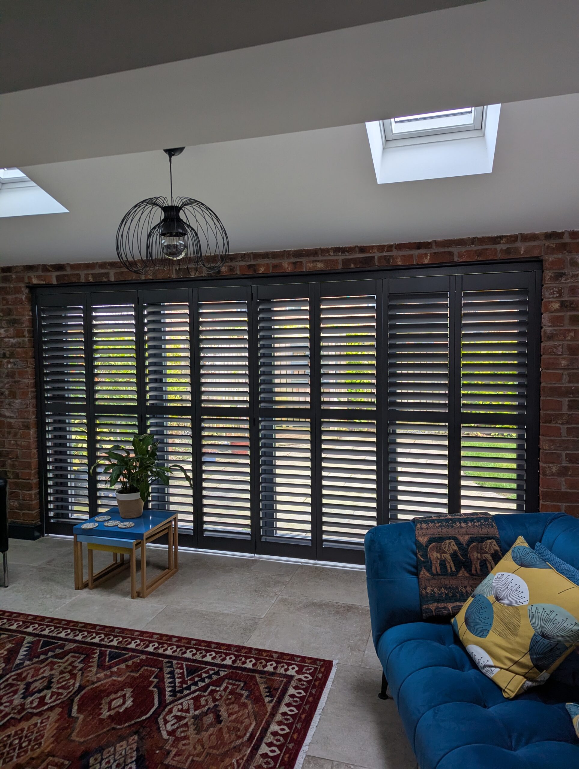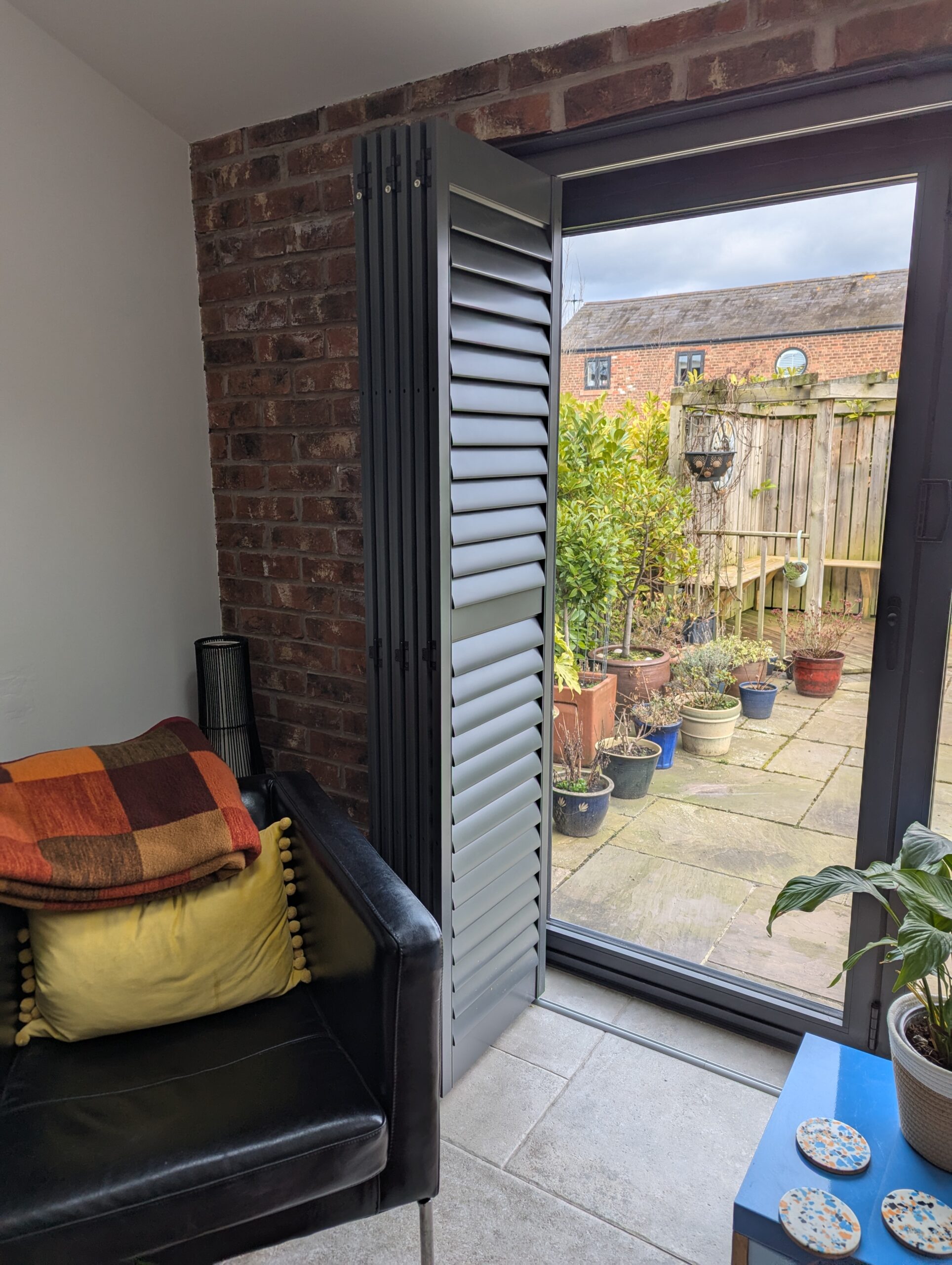 We were recently asked to provide a shutter solution for a couple who had just moved into a beautifully converted barn in Chester. The property featured large bi-fold doors along with a side window, all framed in anthracite, and exposed red brick walls that gave the space real character.