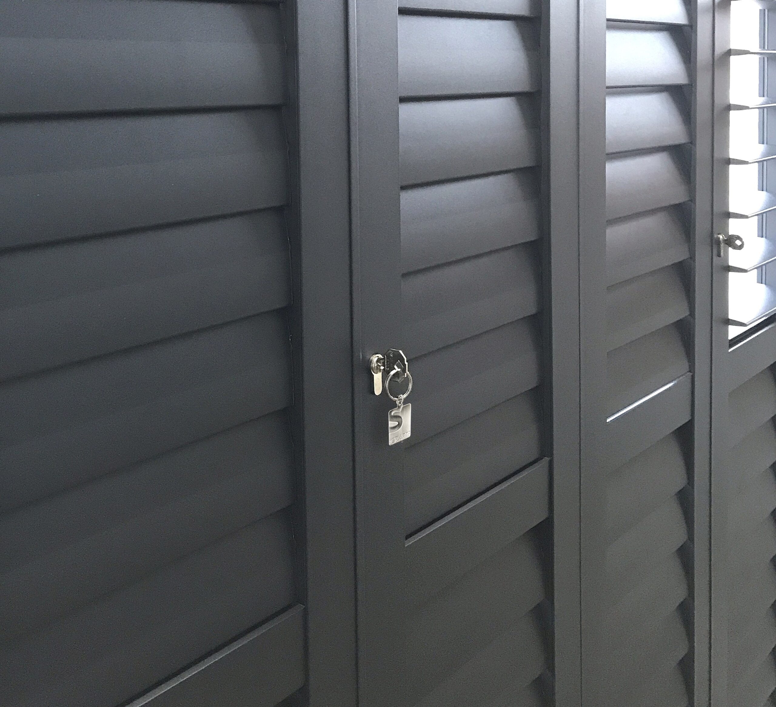 Lockable aluminium shutters allow: