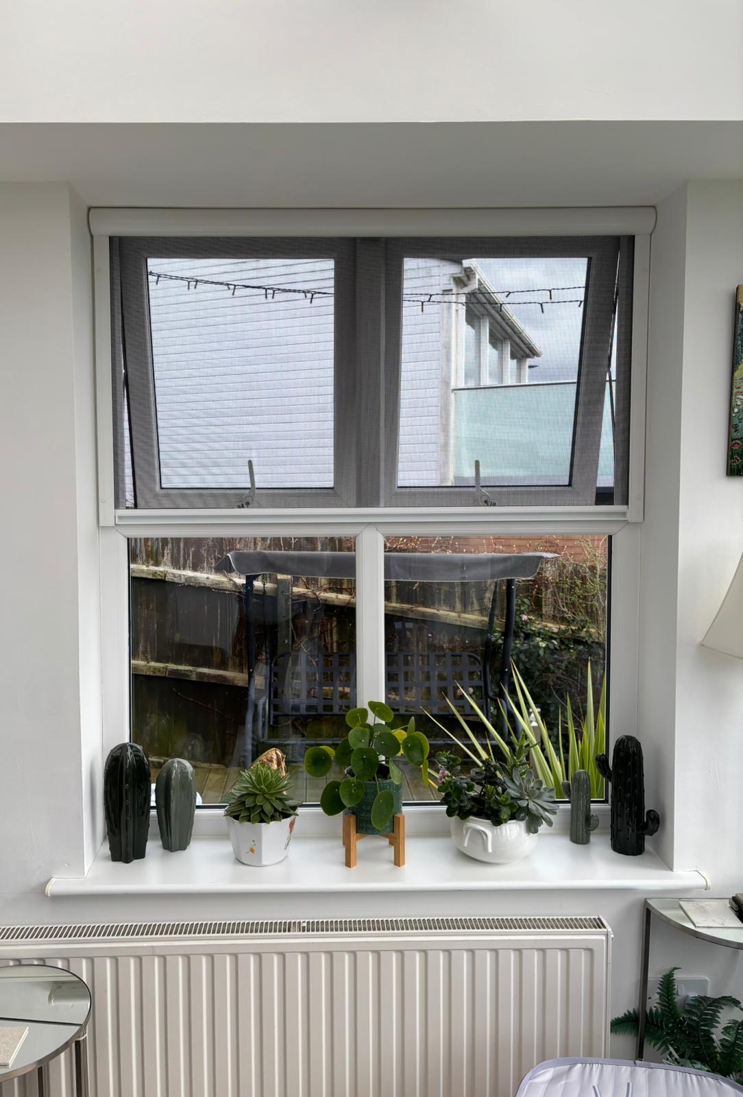 The Serene window fly screens provided a neat, discreet solution for the kitchen and conservatory windows, allowing ventilation while keeping insects out. These screens blend seamlessly with existing windows and are easy to operate when needed.