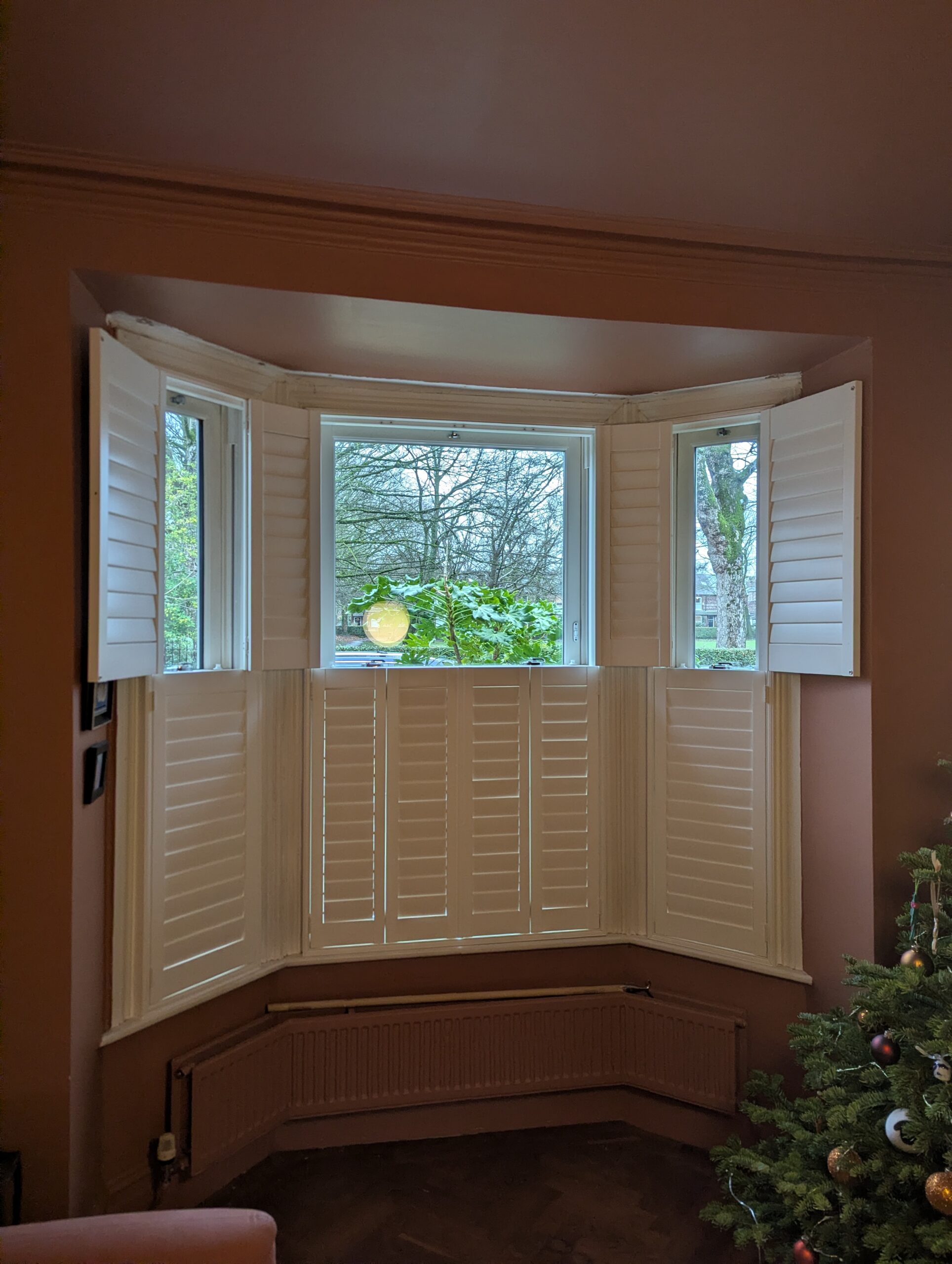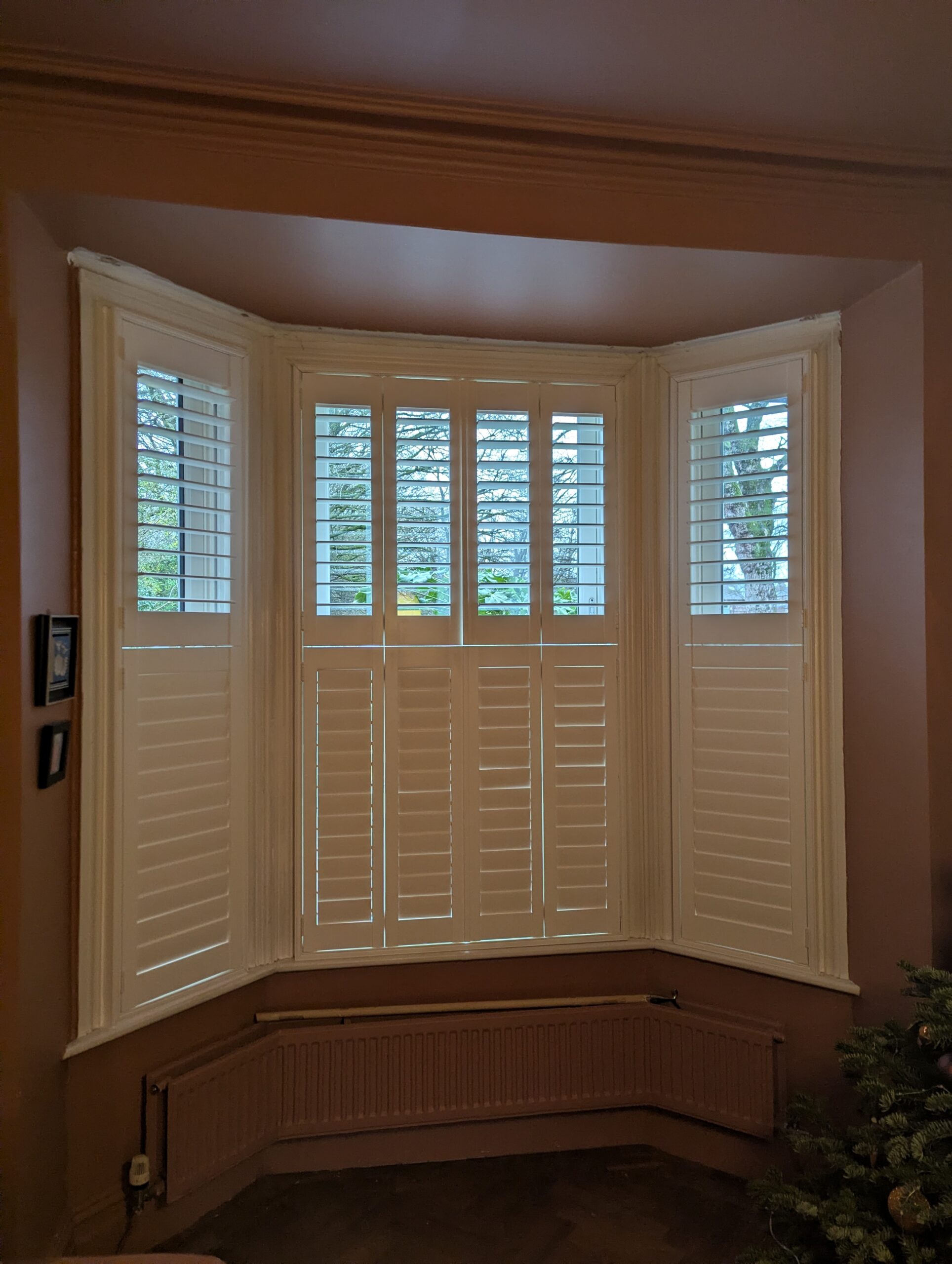 We recently installed these beautiful tier on tier Harris hardwood shutters in Silk White at a home in Didsbury, Manchester.